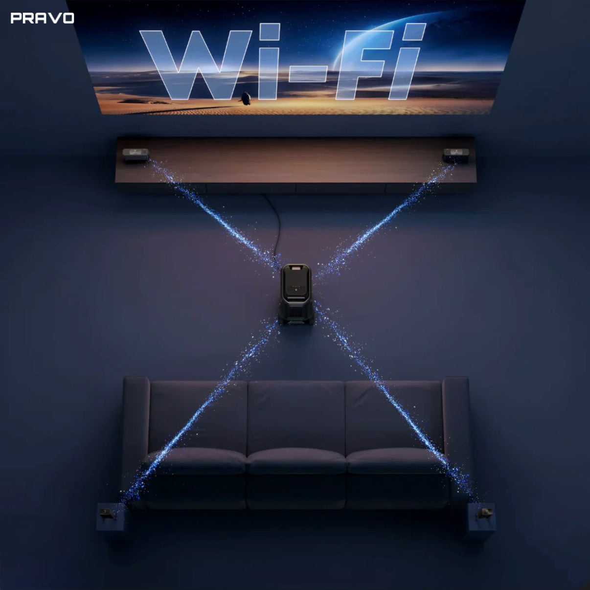 The Pravo CineStation™ features a sleek, space-efficient design that integrates its projection system and speakers in one modern body — ensuring powerful performance without taking up extra space.